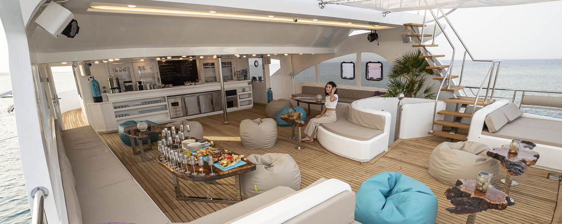 Der Alltag an Bord ist ruhig und gut strukturiert. In der Regel werden 3 bis 4 Tauchgänge pro Tag durchgeführt. Dazwischen bleibt Zeit zum Ausruhen, Essen und zum Austausch der Erlebnisse im Wasser.