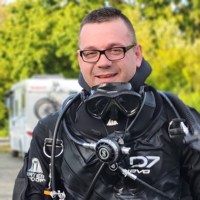 Das Gerätetauchen habe ich 1994 in Kassel erlernt und mich im Unterwasserladen weitergebildet. Den professionellen Weg haben ich in 2015 eingeschlagen. Auf einer Tauchbasis in Kroatien, in der ich 5 Wochen gearbeitet habe, absolvierte ich meinen Divemaster. Zurück im UW-Laden ging es dann weiter bis zum AOWI.